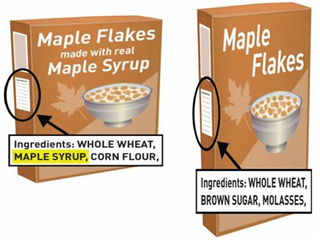 If you want to know if maple products have real maple syrup, you must look at the ingredient list on the package. Of the two examples shown above, only the top one is flavored with real maple syrup.