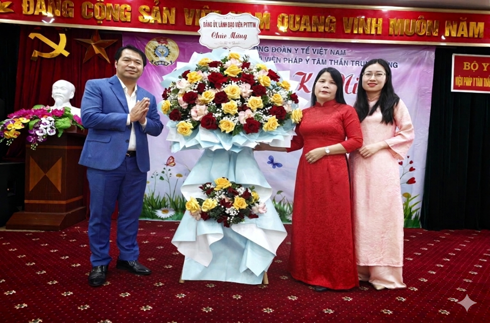 Ban nữ công Viện Pháp y tâm thần Trung ương vui mừng được nhận hoa chúc mừng nhân Ngày Quốc tế Phụ nữ của Cấp ủy, Ban Lãnh đạo, Ban chấp hành công đoàn cơ sở và Ban chấp hành Đoàn thanh niên của Viện Pháp y tâm thần Trung ương.