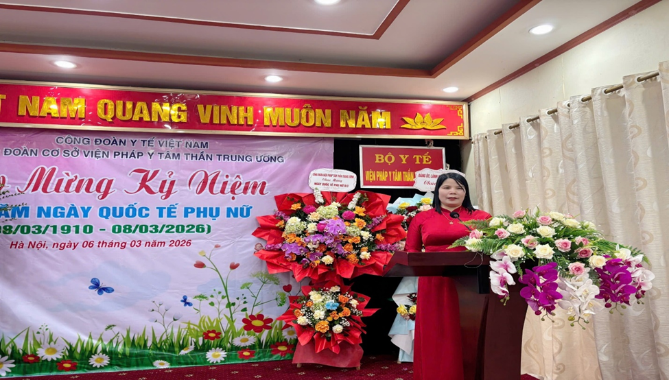 Trong không khí sôi nổi của cả nước thi đua lập thành tích chào mừng kỷ niệm 116 năm ngày Quốc tế phụ nữ và 1986 năm ngày khởi nghĩa Hai Bà Trưng. Được sự nhất trí của cấp ủy, Ban lãnh đạo, Ban chấp hành công đoàn cơ sở, Ngày 06/3/2026 Ban nữ công Viện Pháp y tâm thần Trung ương đã tổ chức lễ mít tinh chào mừng ngày Quốc tế phụ nữ 08/3. Đây cũng là dịp chị em phụ nữ của Viện đã cùng nhau ôn lại truyền thống vẻ vang của ngày lễ ý nghĩa này. Đồng thời bày tỏ lòng biết ơn và sự trân trọng sâu sắc đối với những đóng góp to lớn của phụ nữ trong mọi thời đại.