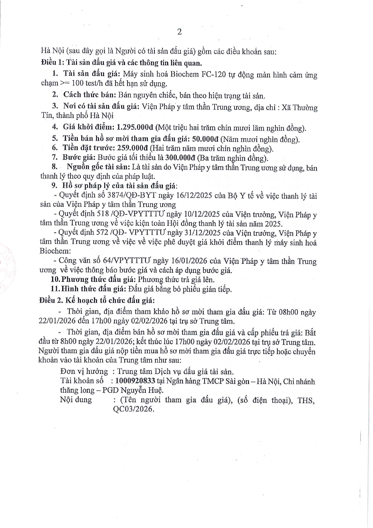 Thông báo đấu giá số 03/2026/TBĐG