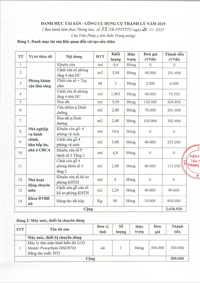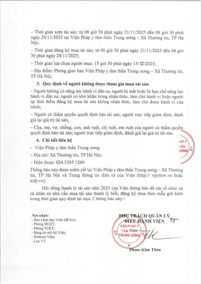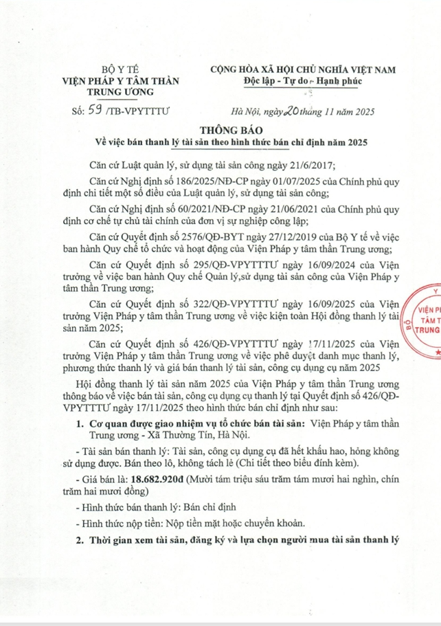 » Thông báo vv bán thanh lý tài sản theo hình thức bán chỉ định năm 2025