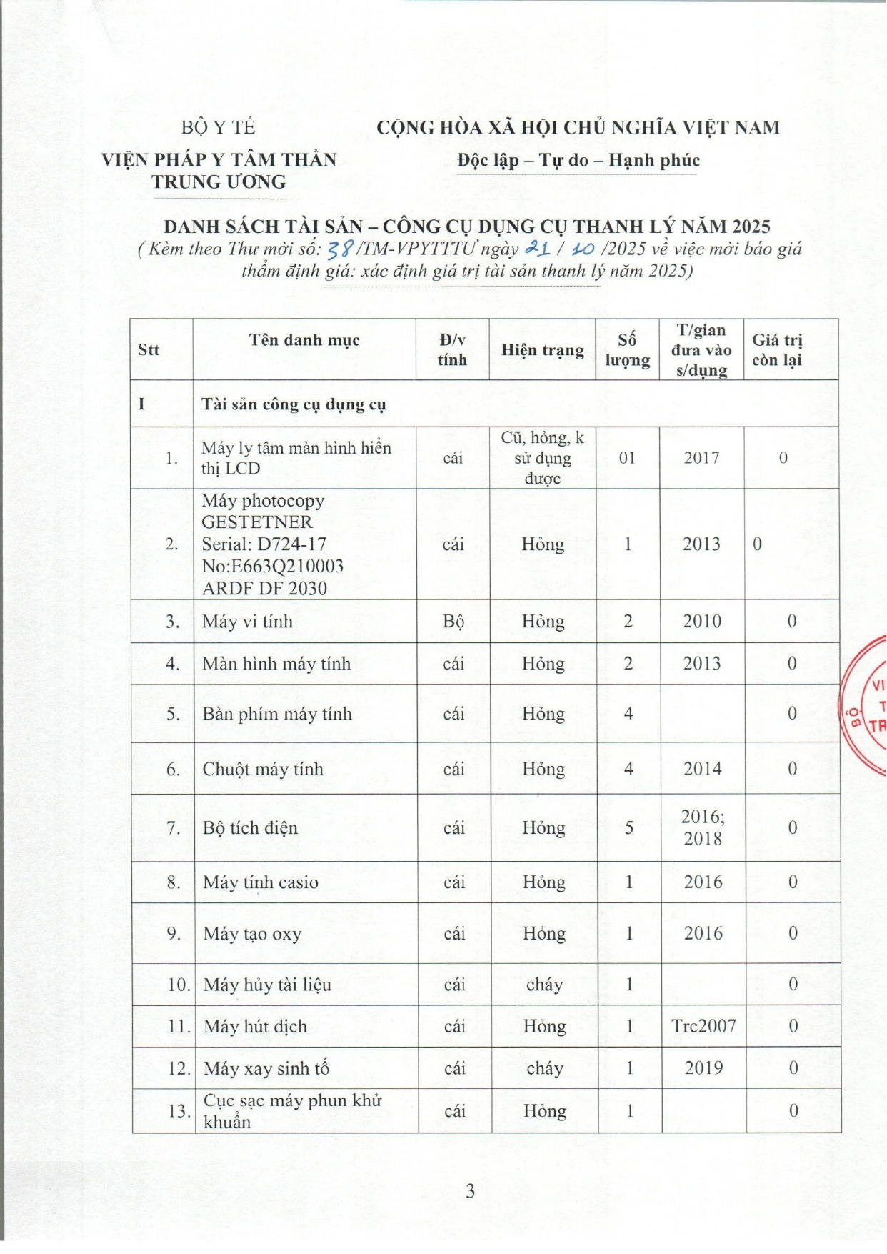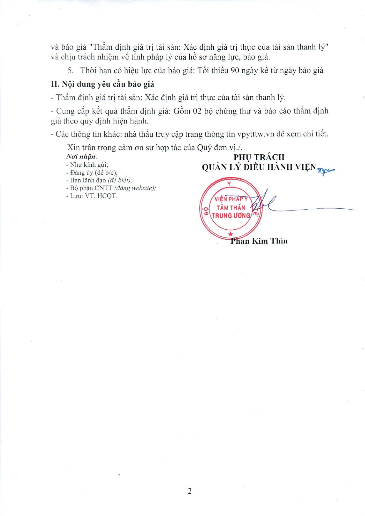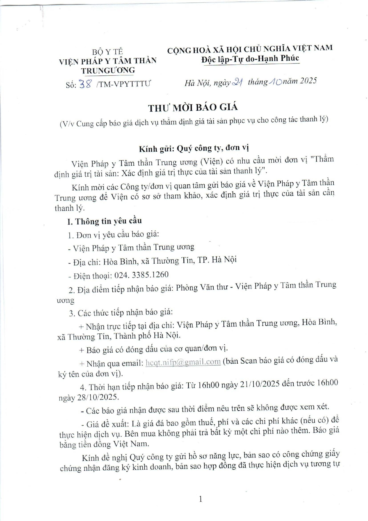 Kính gửi các Công ty, Đơn vị cung cấp "Thẩm định giá trị tài sản: Xác định giá trị thực của tài sản thanh lý"