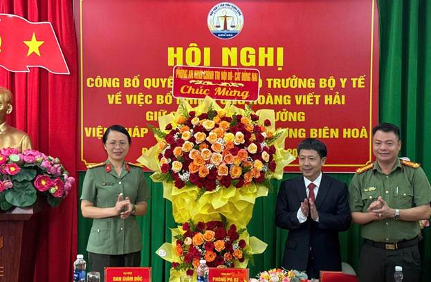 “Lãnh đạo phòng PA03 Công an tỉnh Đồng Nai tặng hoa chúc mừng tân Viện trưởng”